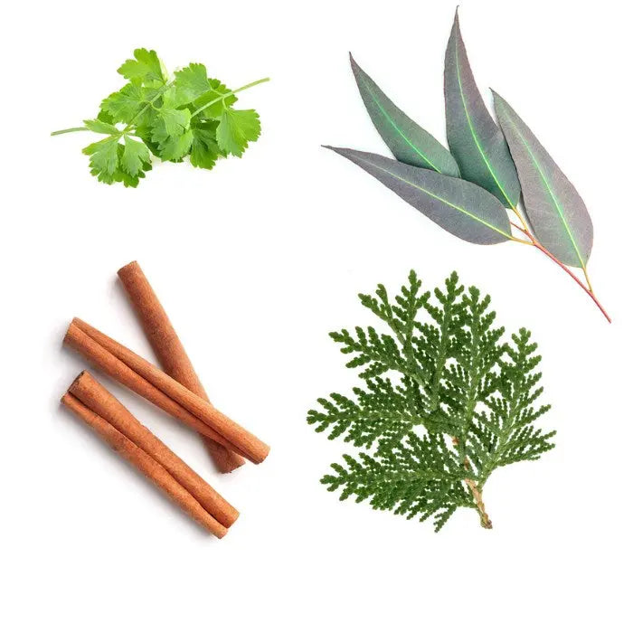 Die Mischung enthält wirksame Bestandteile wie Limonen, Geranial, Neral und 1.8-Cineol. Besonders hervorzuheben ist der Kochii-Eukalyptus aus Australien mit dem höchsten natürlichen Eukalyptol-Gehalt aller Eukalyptusarten.