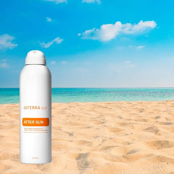 Das doTERRA After-Sun Körperspray bietet der Haut nach dem Sonnenbaden intensive Pflege. Hyaluronsäure spendet Feuchtigkeit, Aloe Vera beruhigt die Haut und Arnikablütenextrakt unterstützt die Regeneration.