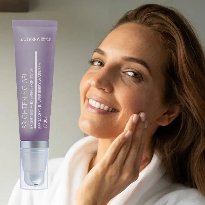 Das doTERRA Aufhellendes Gel kombiniert moderne Hautpflegetechnologie mit CPTG™-zertifizierten ätherischen Ölen wie Bergamot, Juniper Berry und Melissa. Es hellt die Haut sanft auf, glättet sie und unterstützt ein klares, ebenmäßiges Hautbild.