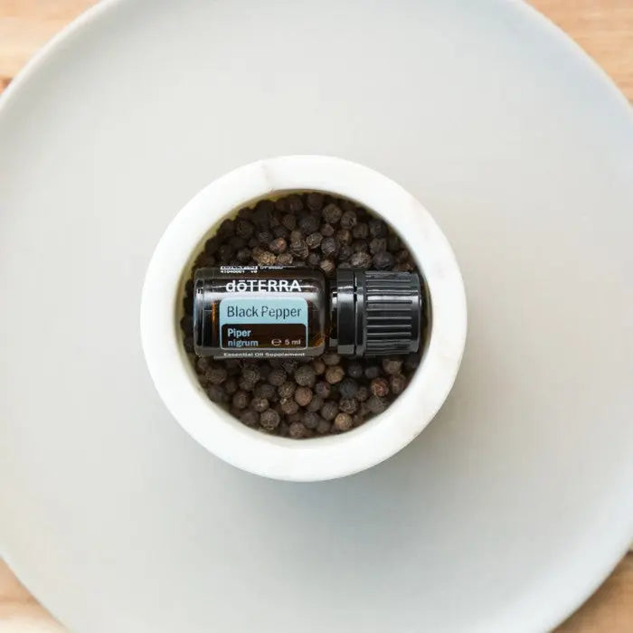 doTERRA Black Pepper (ätherisches Schwarzer Pfeffer Öl) ist weit mehr als nur ein klassisches Küchengewürz. Das kraftvolle ätherische Öl überzeugt mit einem scharfen, würzigen und fruchtig-krautigen Aroma, das sowohl kulinarisch als auch aromatisch vielseitig einsetzbar ist.