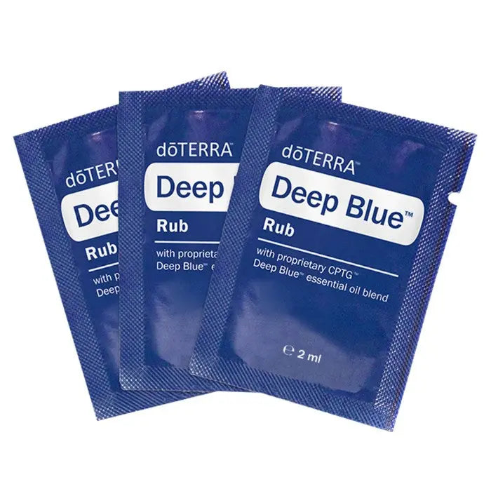 doTERRA Deep Blue Rub Proben der topischen Creme, die mit der ätherischen Ölmischung Deep Blue und pflanzlichen Extrakten formuliert wurde. Sie wurde speziell entwickelt, um gezielt problematische Bereiche zu beruhigen und zu kühlen. Diese Creme kombiniert acht ätherische Öle, die für ihre entspannende Wirkung auf Muskeln und Gelenke bekannt sind.