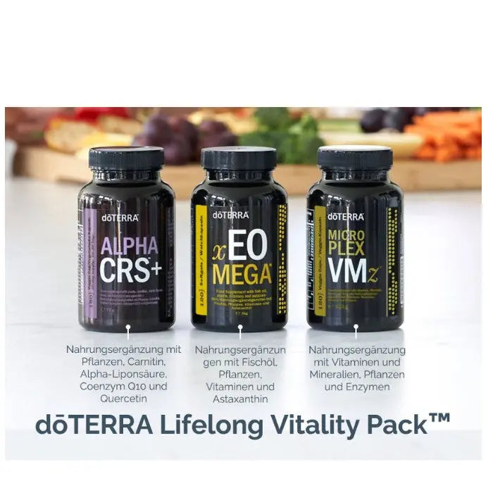 Mit dem doTERRA Lifelong Vitality™ Pack leben Sie ein Leben voller Energie, Gesundheit und innerem Gleichgewicht. Dieses beliebte Produktpaket enthält Nahrungsergänzungsmittel, die Ihr allgemeines Wohlbefinden steigern, Ihre Konzentration fördern und Ihre Vitalität auf natürliche Weise unterstützen.