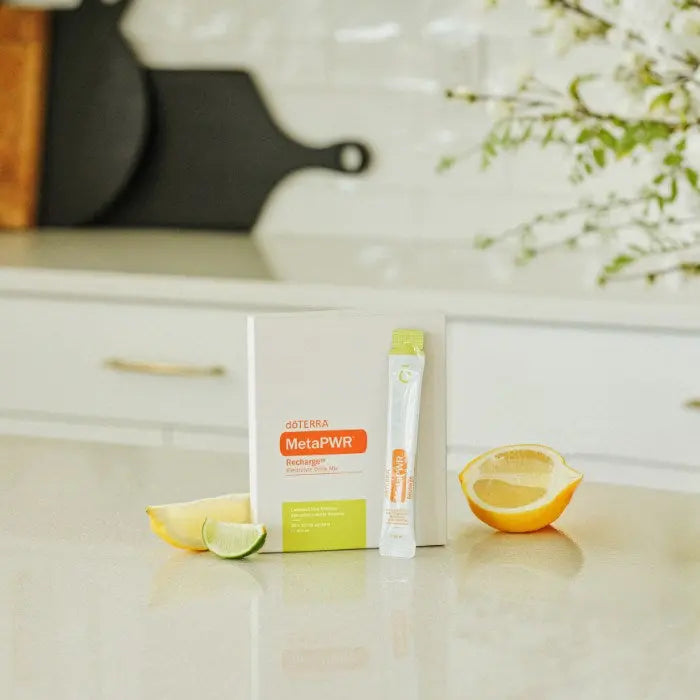 doTERRA MetaPWR Recharge Lemon Aroma ist eine exklusive Mischung aus Elektrolyten, Pflanzenextrakten und Mineralstoffen. Sie unterstützt eine dauerhafte Feuchtigkeitszufuhr auf zellularer Ebene.