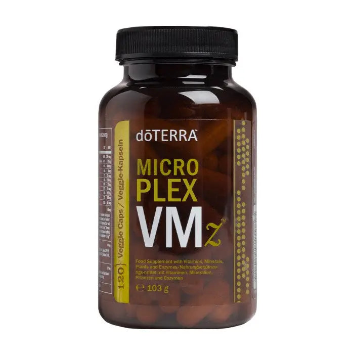Der Microplex VMz Nährstoffkomplex von doTERRA ist ein vollwertiges Nahrungsergänzungsmittel mit bioverfügbaren Vitaminen und Mineralstoffen. Die Kombination aus Vitaminen A, C, E und einem umfassenden B-Komplex sowie chelatierten Mineralien wie Calcium, Magnesium und Zink unterstützt Ihren täglichen Nährstoffbedarf gezielt.