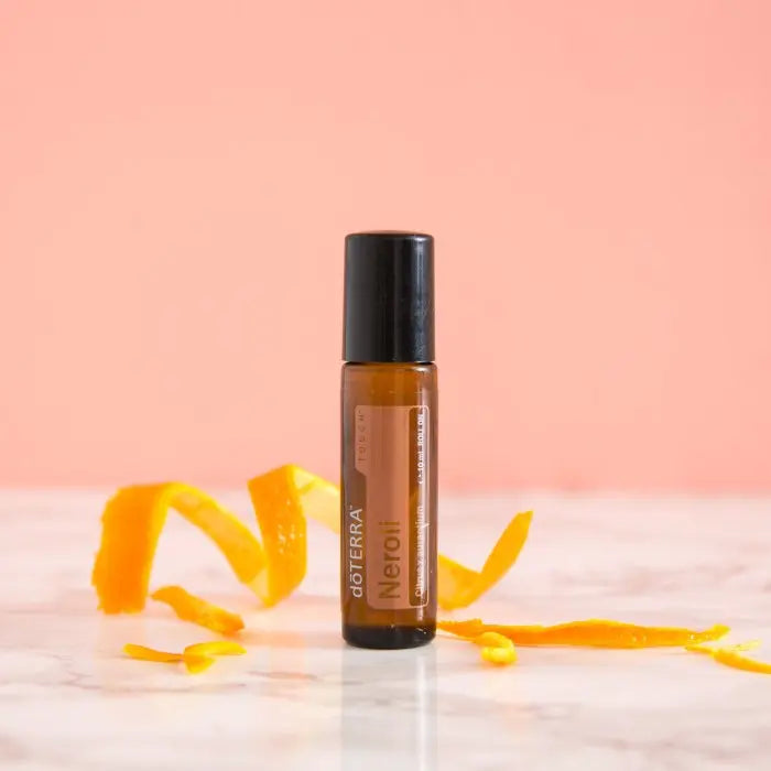 doTERRA Neroli Touch kombiniert reines ätherisches Neroli-Öl mit fraktioniertem Kokosöl in einer praktischen Roll-on-Flasche. Das Öl wird aus den Blüten des Bitterorangenbaums gewonnen und besitzt ein süßes, blumiges und frisches Zitrusaroma.