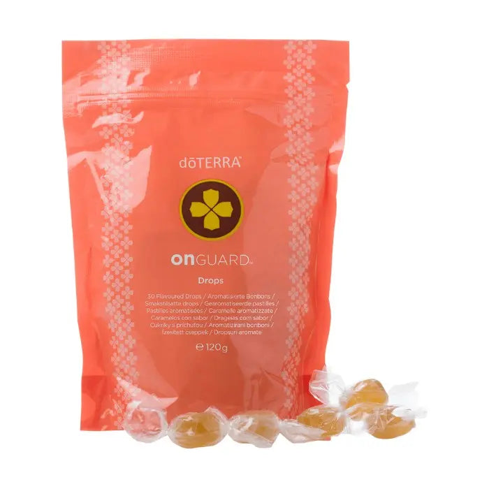 doTERRA On Guard Pastillen – auch Protecting Throat Halspastillen genannt – bieten eine praktische Möglichkeit, die Vorteile der ätherischen Ölmischung On Guard zu nutzen. Enthalten sind Wildorange, Nelke, Zimt, Eukalyptus, Rosmarin und Myrrhe – in einer wohlschmeckenden, 100 % natürlichen Pastille.