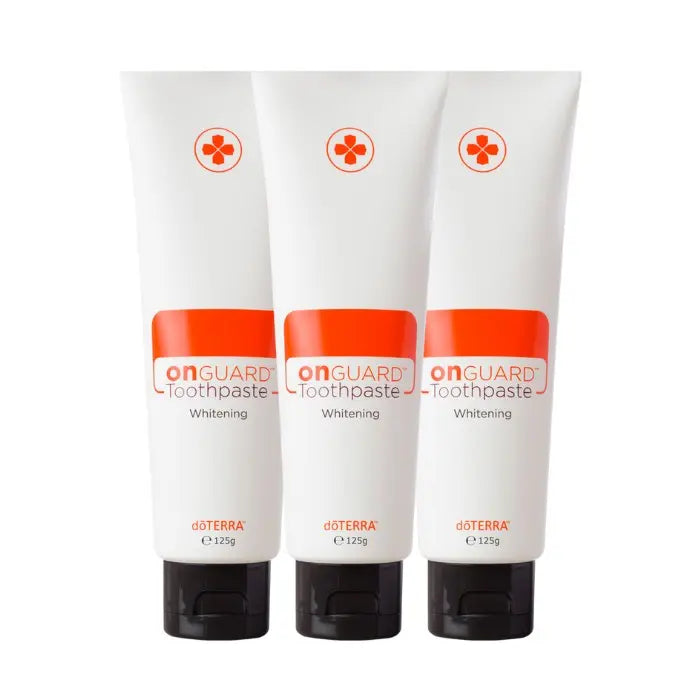Die fluoridfreie doTERRA On Guard Zahnpasta 3er-Pack vereint die schützende Wirkung ätherischer Öle mit natürlichen Inhaltsstoffen. Sie unterstützt die Mundhygiene, sorgt für frischen Atem und bringt Ihr Lächeln zum Strahlen.