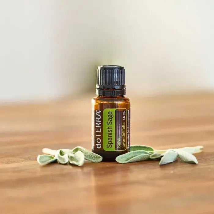 - Mischen Sie doTERRA Spanish Sage mit fraktioniertem Kokosöl und massieren Sie es in Ihre Haut ein, um den kühlenden, lindernden Effekt zu genießen.