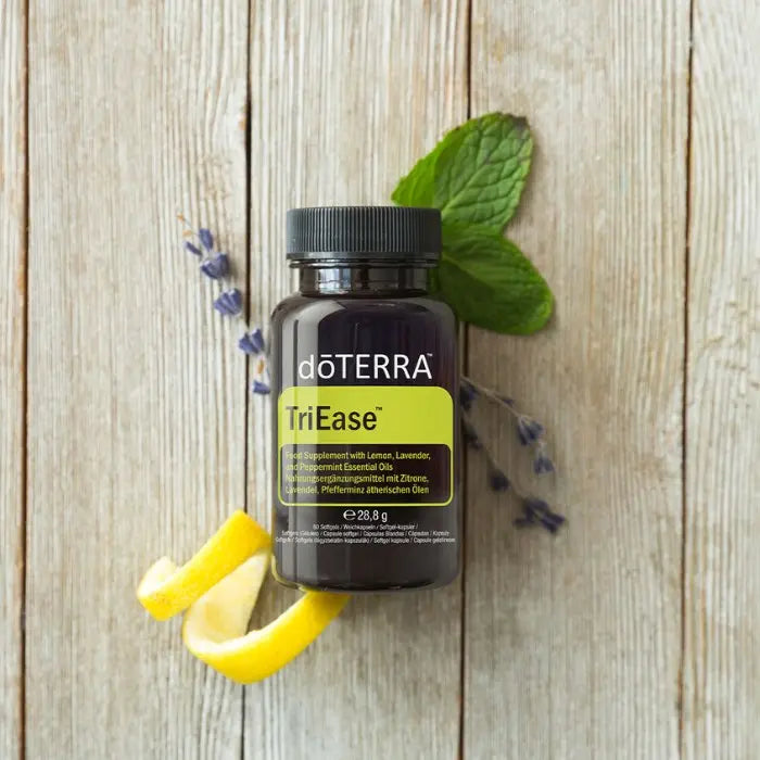 doTERRA TriEase Softgels wurden speziell für die Auswirkungen der wechselnden Jahreszeiten entwickelt. Jedes Softgel enthält zu gleichen Teilen die ätherischen Öle Lemon (Zitrone), Lavender (Lavendel) und Peppermint (Pfefferminze).