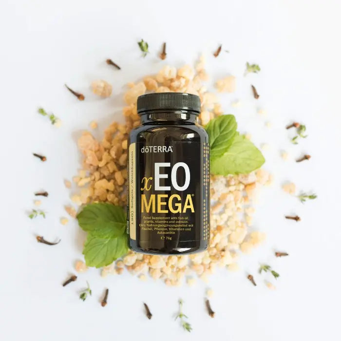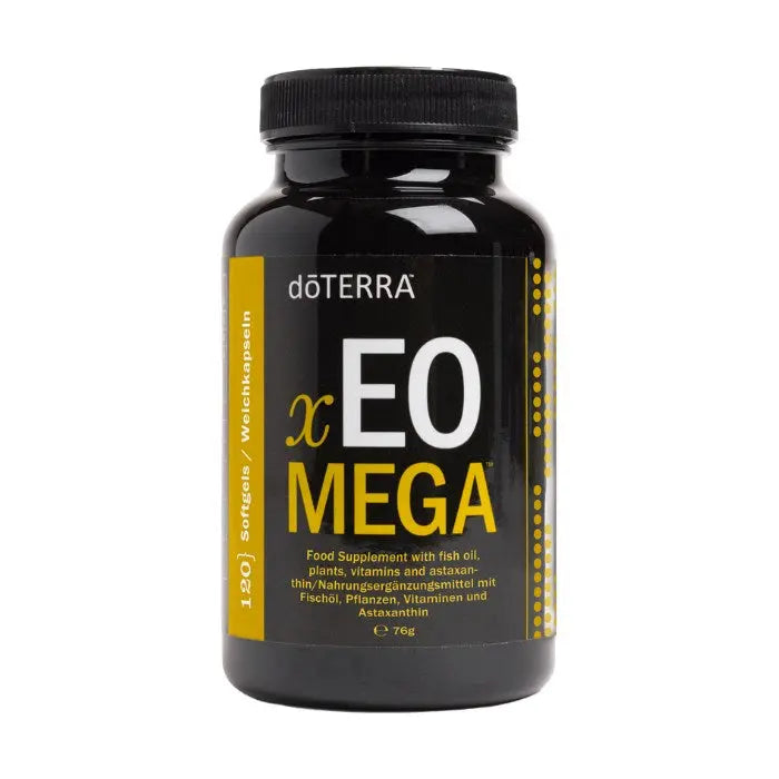 Der doTERRA xEO Mega Omegakomplex kombiniert CPTG™-zertifizierte ätherische Öle mit marinen Omega-Fettsäuren und natürlichen Carotinoiden. Die enthaltenen EPA- und DHA-Fettsäuren tragen zur normalen Herzfunktion bei.