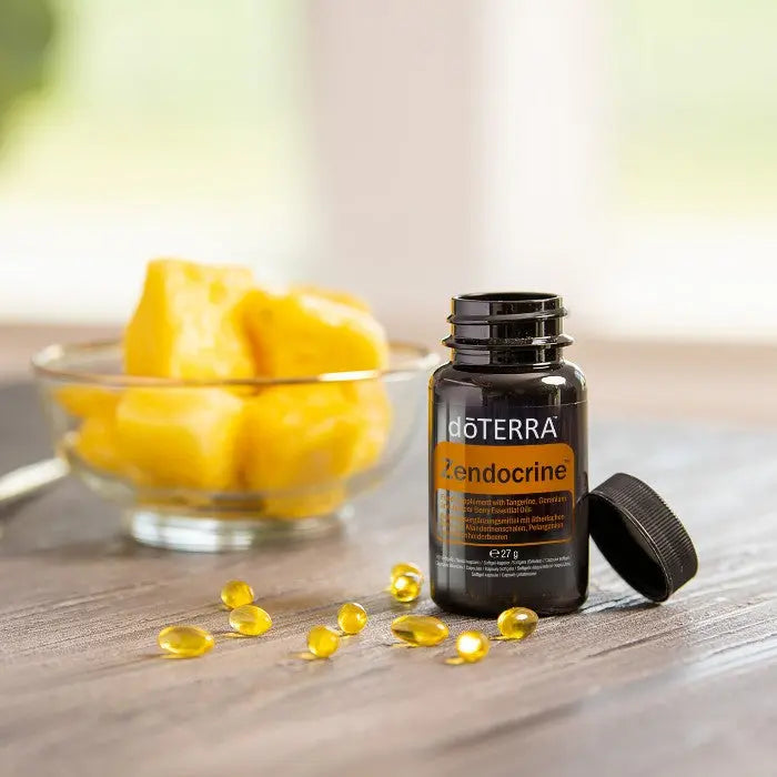 doTERRA Zendocrine Softgels enthalten die doTERRA Zendocrine Mischung für den Neubeginn – eine geschützte Kombination aus den ätherischen Ölen Tangerine (Mandarine), Rosemary (Rosmarin), Geranium (Geranie), Juniper Berry (Wacholderbeere) und Cilantro (Korianderkraut). Ob unterwegs, in Eile oder für den täglichen Komfort – die Softgels bieten eine einfache Einnahmeform für dein Wohlbefinden.