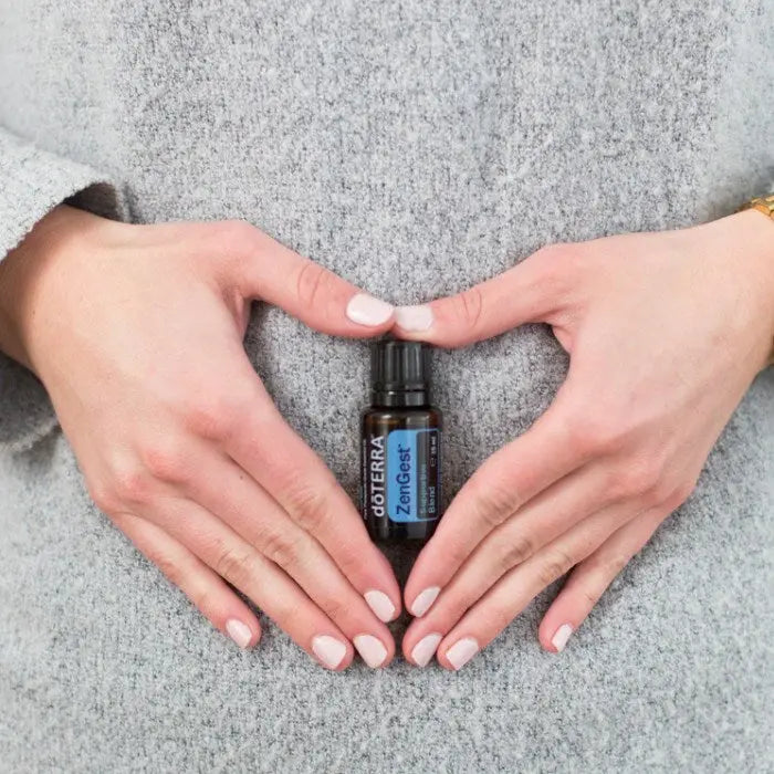Komfort rund um die Uhr mit doTERRA Zengest. Diese ätherische Ölmischung kombiniert bewährte Pflanzenöle, die für ihre wohltuenden Eigenschaften bei Magenbeschwerden bekannt sind.